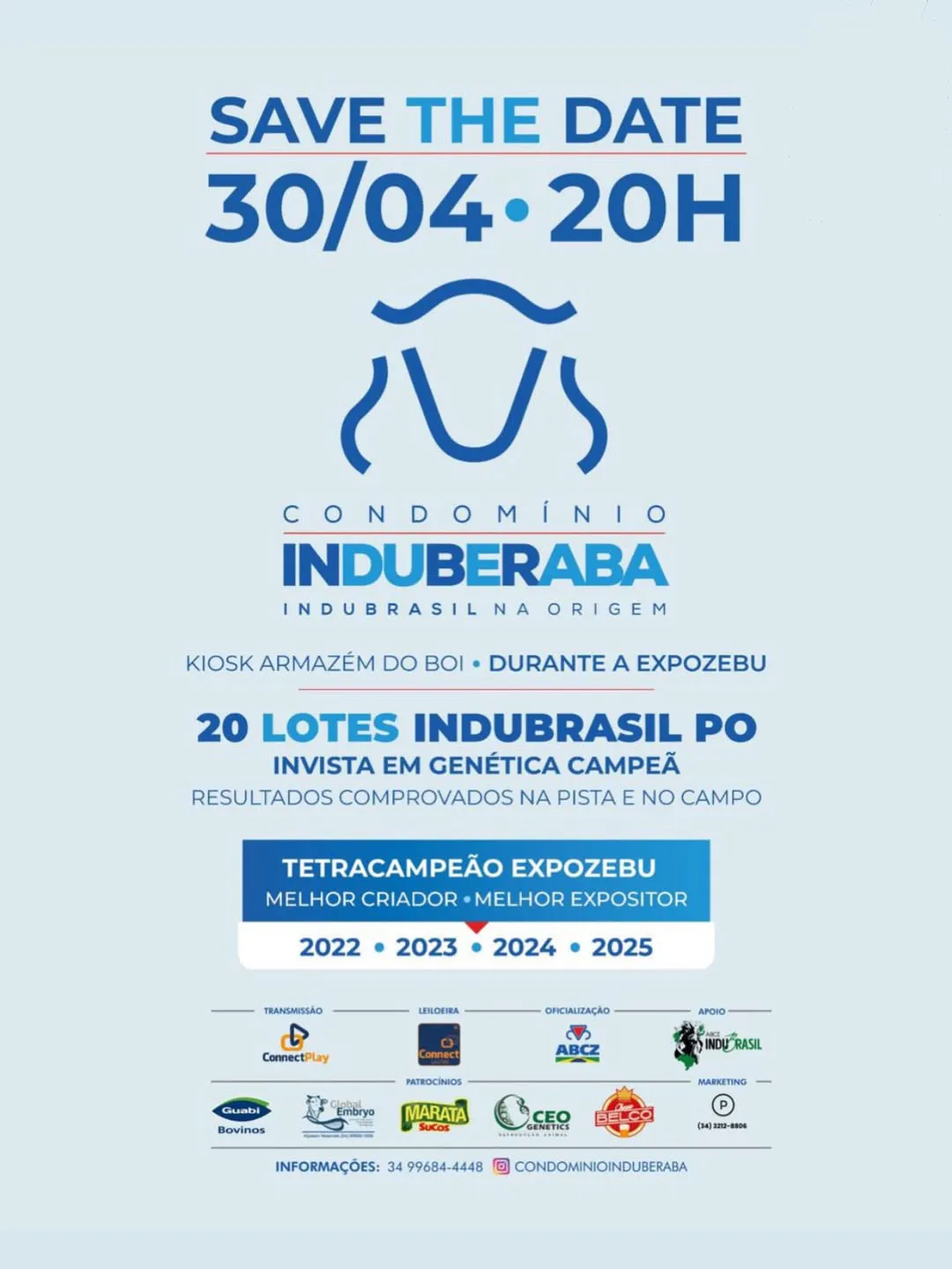 O 3º Leilão do Condomínio Induberaba & Convidados é um evento de destaque voltado para a comercialização de gado da raça Indubrasil, com início programado para as 20:00. O remate será realizado no Kiosk Armazém do Boi, em Uberaba/MG, contando com a organização da Connect Leilões. A transmissão ao vivo estará disponível pelo Connect Play.