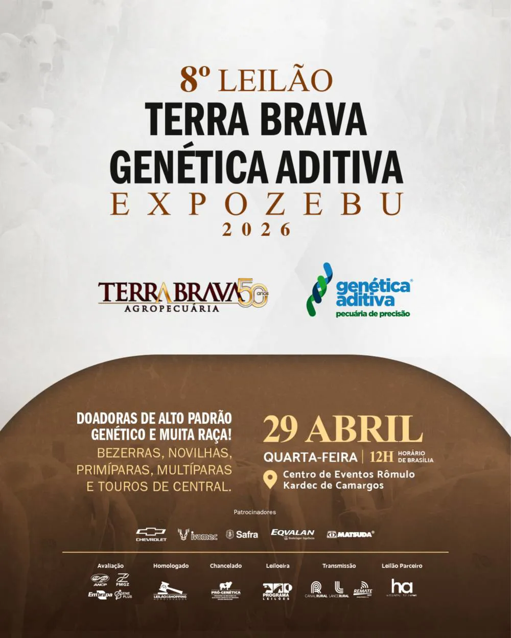 O Leilão Terra Brava e Genética Aditiva é um evento de destaque voltado para a comercialização de gado da raça Nelore, com início programado para as 13:00. O remate será realizado no Centro de Eventos RKC, em Uberaba/MG, contando com a organização da Programa Leilões. A transmissão ao vivo estará disponível pelo Canal Rural.