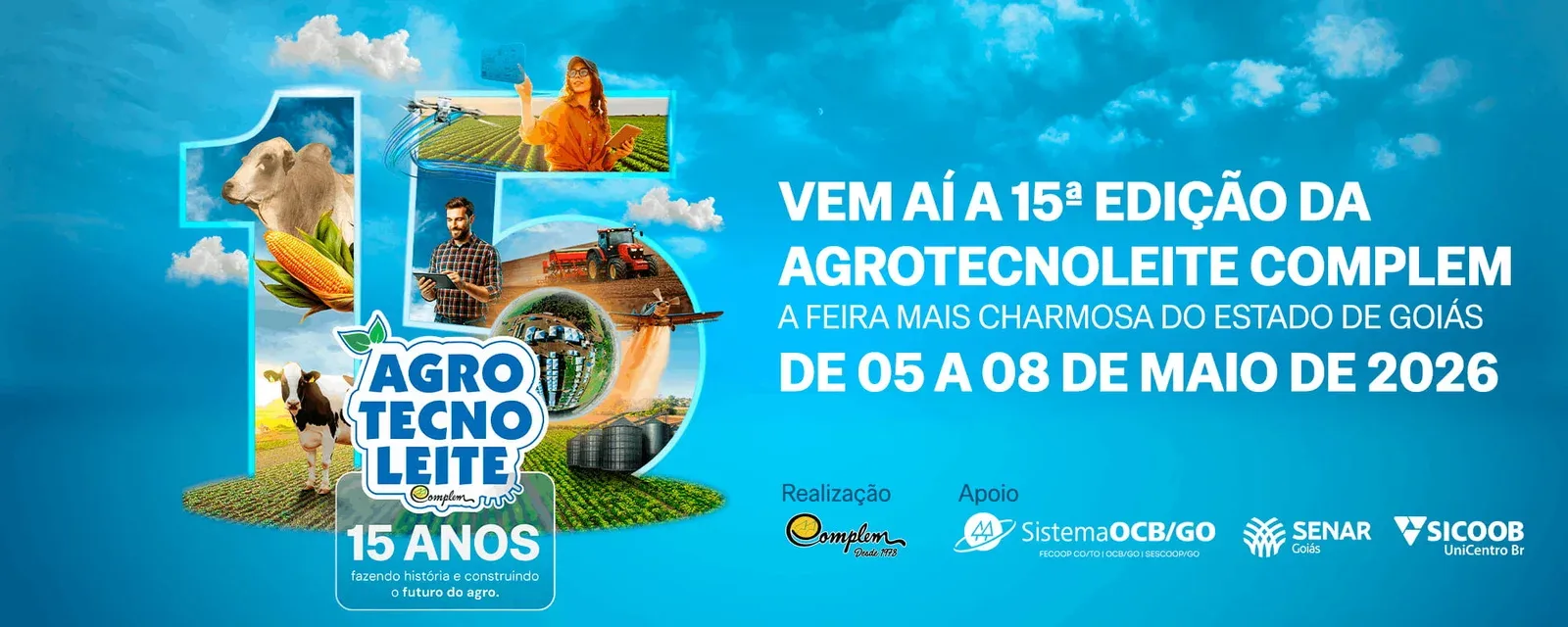 Prepare-se para vivenciar uma edição histórica da Agrotecnoleite Complem! De 5 a 8 de maio de 2026, a maior feira do setor leiteiro de Goiás será um verdadeiro centro de inovação, tecnologia e grandes oportunidades de negócios. Durante quatro dias de imersão no universo agro, o campo goiano se tornará o ponto de encontro para os principais players do setor, com exposição de produtos, tecnologias de ponta e um ambiente propício para realizar conexões estratégicas que podem transformar seu negócio. E atenção, expositores!