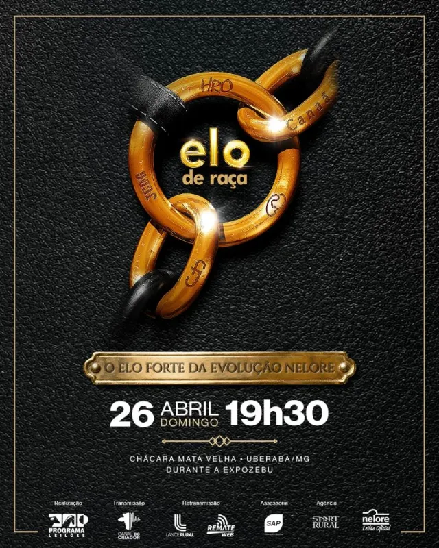 O Leilão Elo de Raça é um evento de destaque voltado para a comercialização de gado da raça Nelore, com início programado para as 20:00. O remate será realizado na Chácara Mata Velha, em Uberaba/MG, contando com a organização da Programa / Remate. A transmissão ao vivo estará disponível pelo Canal do Criador.