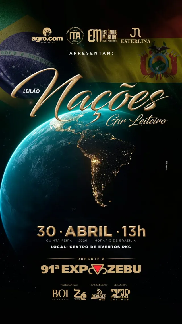 O Leilão Nações GIR Leiteiro é um evento de destaque voltado para a comercialização de gado da raça Gir Leiteiro, com início programado para as 13:00. O remate será realizado no Centro de Eventos RKC, no Parque Fernando Costa, em Uberaba/MG, contando com a organização da Programa Leilões. A transmissão ao vivo estará disponível pelo Remate Web.