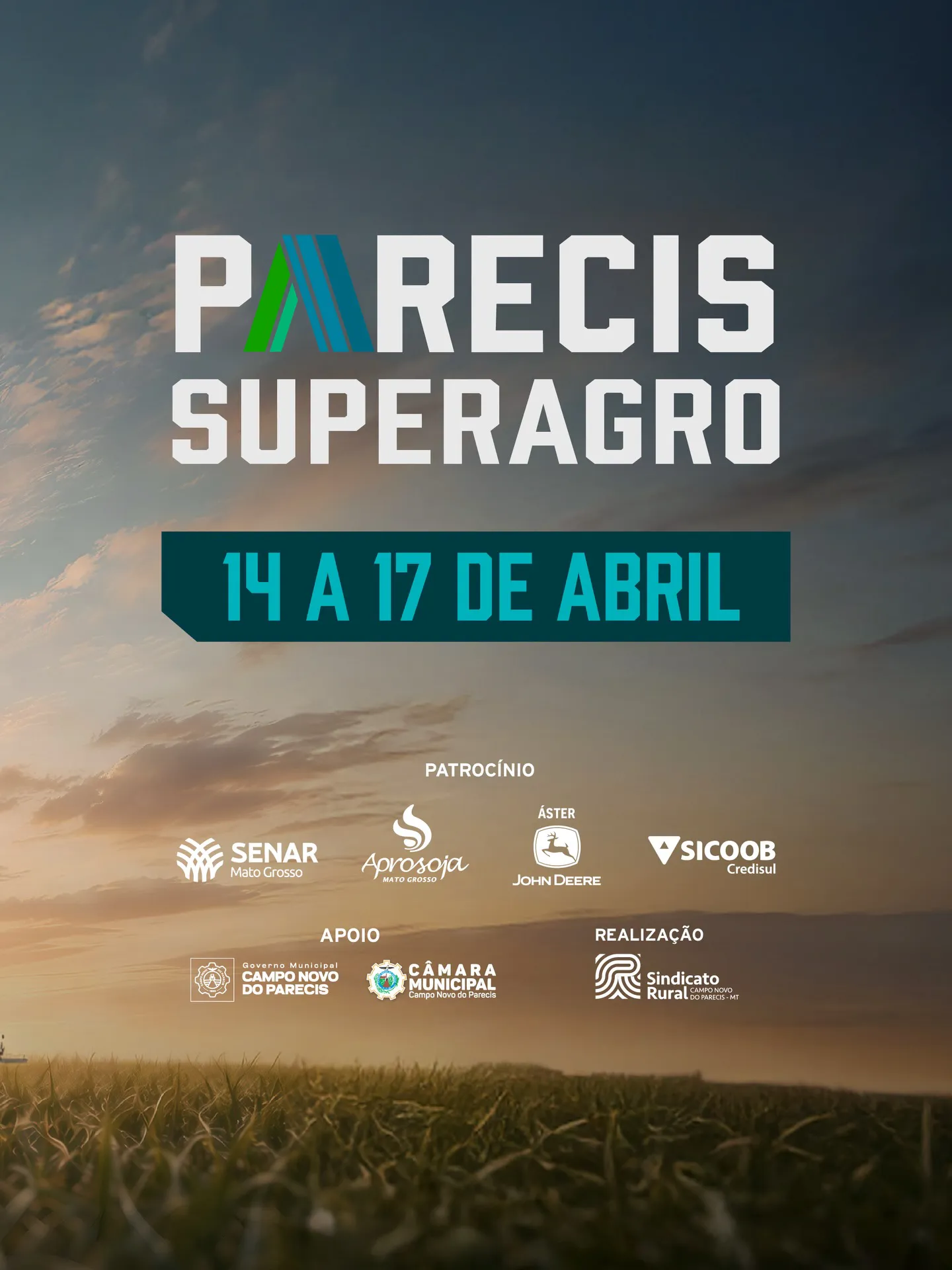 O Parecis SuperAgro é realizado em Campo Novo do Parecis (MT) e figura como um dos principais eventos do agronegócio mato-grossense. A edição 2026 acontece de 08 a 11 de abril, reunindo expositores de máquinas agrícolas, sementes, defensivos, irrigação, pecuária e serviços especializados. O evento movimenta a economia regional e oferece um espaço dedicado à demonstração de novas tecnologias, debates técnicos e à geração de negócios entre produtores, revendas e fornecedores de soluções para o campo. O Parecis SuperAgro reflete a força produtiva da região e o protagonismo do Médio Norte de Mato Grosso no agronegócio nacional.
